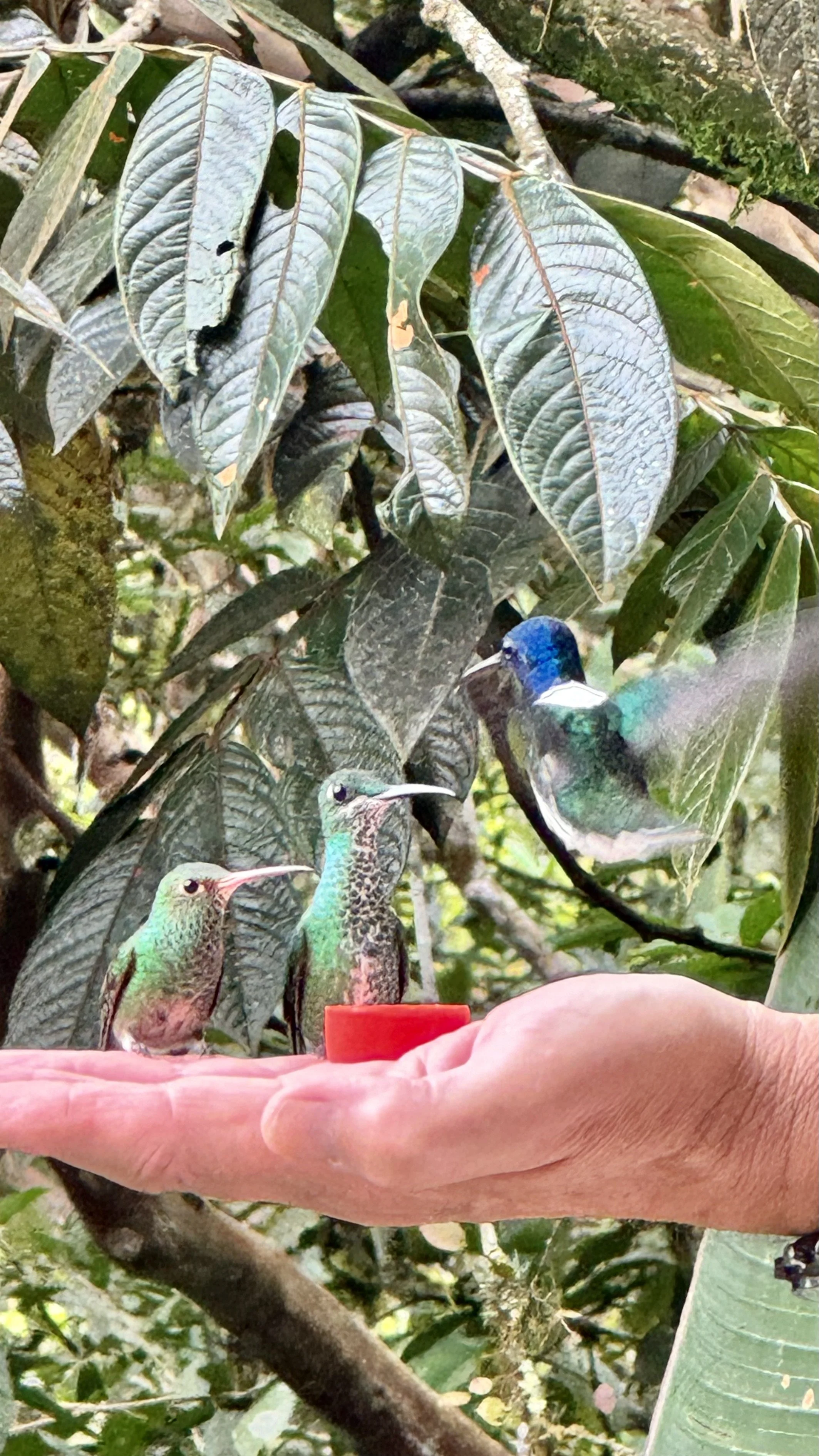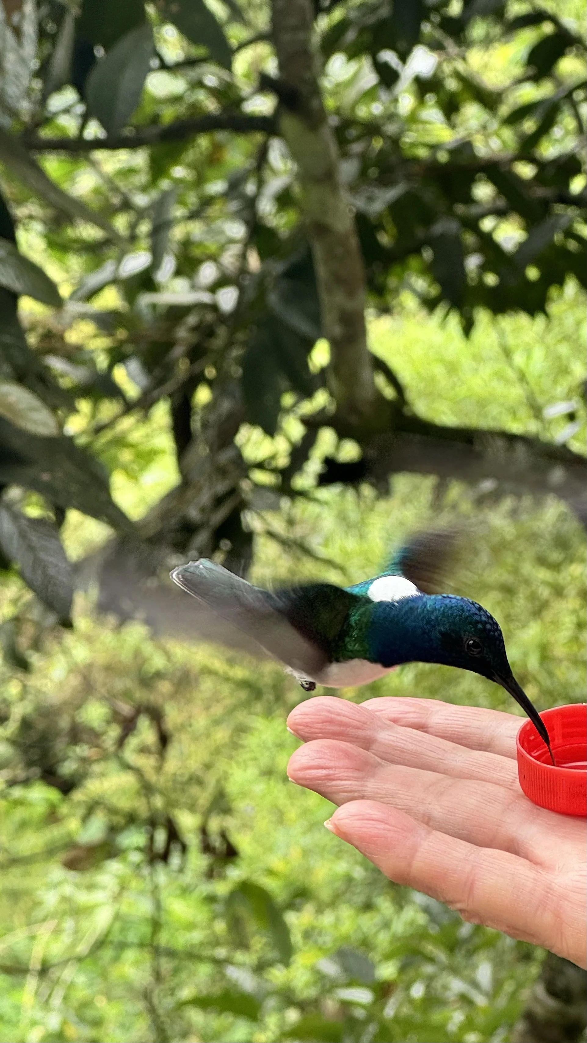 If, like me, you've ever dreamed of getting up close to hummingbirds, Punto OrnitolĂłgico can make that a reality. For just $5, you have the opportunity to feed and observe these marvelous creatures up close and also take a stroll through the beautiful grounds. To feel the power in their little wings and the grip of their tiny feet on your hand is truly remarkable!